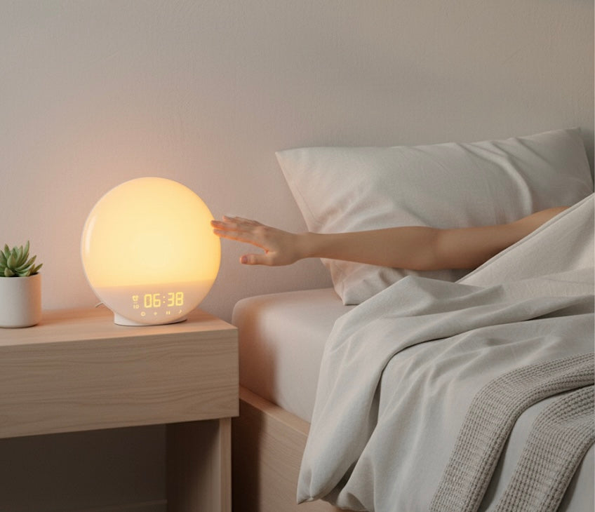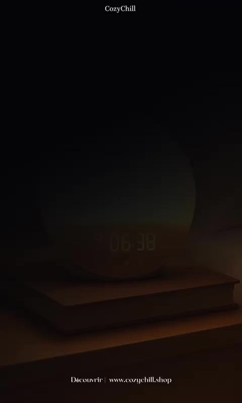 Le réveil CozyChill diffuse une lueur progressive et chaleureuse pour un réveil apaisé, loin du stress des alarmes classiques.